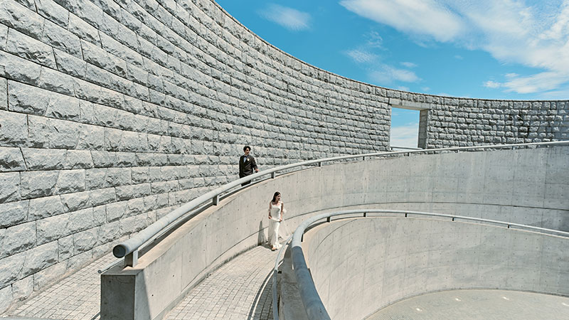 青い空と海、緑あふれる淡路夢舞台を背景に、心満たされるフォトウエディングを撮影しませんか?「グランドニッコー淡路」では、ホテル館内はもちろん、建築家・安藤忠雄氏が設計した淡路夢舞台の象徴的な建築空間でも撮影が可能。国内外のゲストを魅了するリゾートロケーションの中で、撮影から挙式・宿泊までを一貫してお手伝いも可能です。旅を楽しむように過ごすウエディングスタイルで、思い出に残る一日をお届けします。